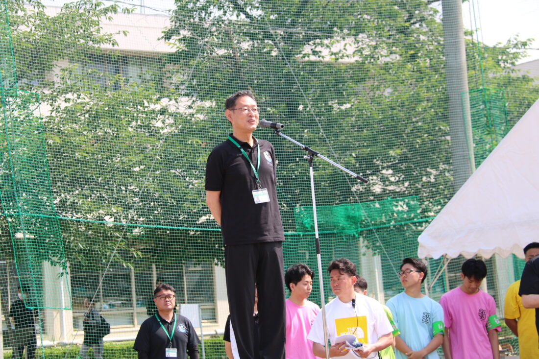 前日の午後から降り始めた雨が気になりましたが、当日の朝から生徒たちがグラウンド整備をしてくれました。その甲斐もあり、開会式から晴天のもと、無事に全てのプログラムを終えることができました。また、暑い中保護者のみなさまも300名近くが来校され、グラウンドはギッシリと人垣が出来ていました。