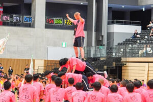 団パフォーマンスでは、各団オリジナリティ溢れるすばらしいパフォーマンスを披露してくれました。組体操が完成した瞬間には観客席から大きな歓声が上がりました。